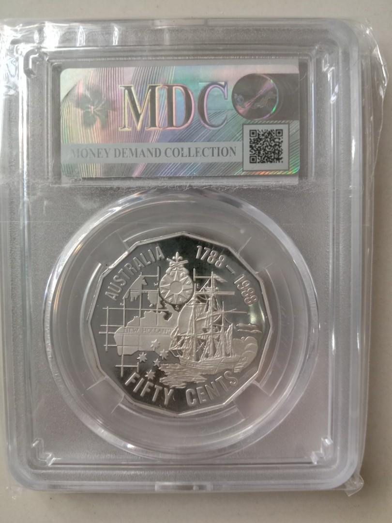 1988 FIFTY CENT - *BICENTENNIAL* - PCGS MS66: $45.00: 14d 16h left: 1988 Australia Uncirculated Fifty Cent 50C coin - PCGS MS68: $160.00: 16d 11h left: 1988 50 Cent Bicentennial Mule Silver Proof Coin PCGS PR63 Only Two Registered: $85,000.00: 21d 12h left: 1988 Bicentennial Silver 50c Proof PCGS PR68DCAM - Gold Shield: $85.00: 23d 10h left
