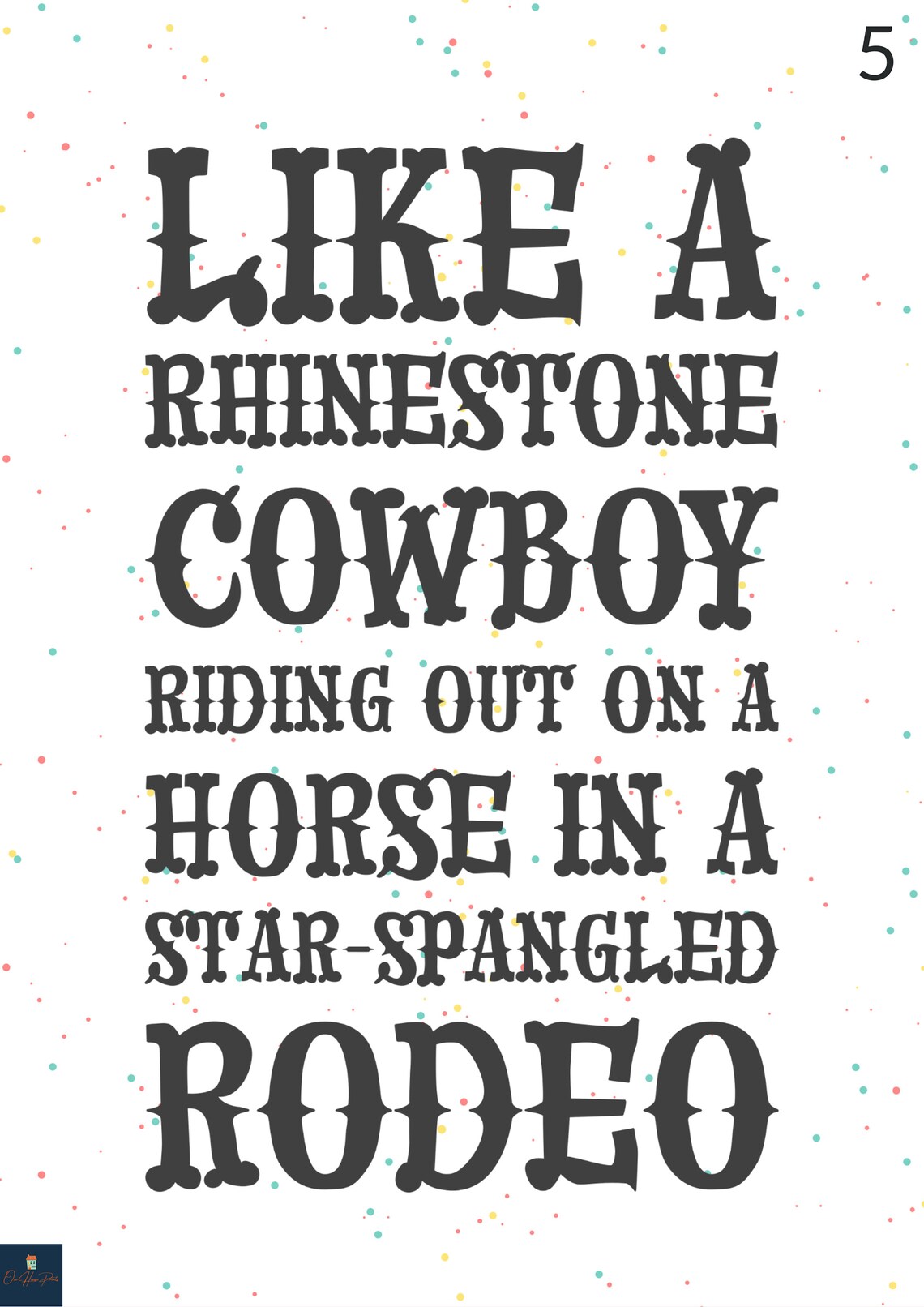 Rhinestone Cowboy Lyrics Print Glen Campbell Inspired Music Etsy
