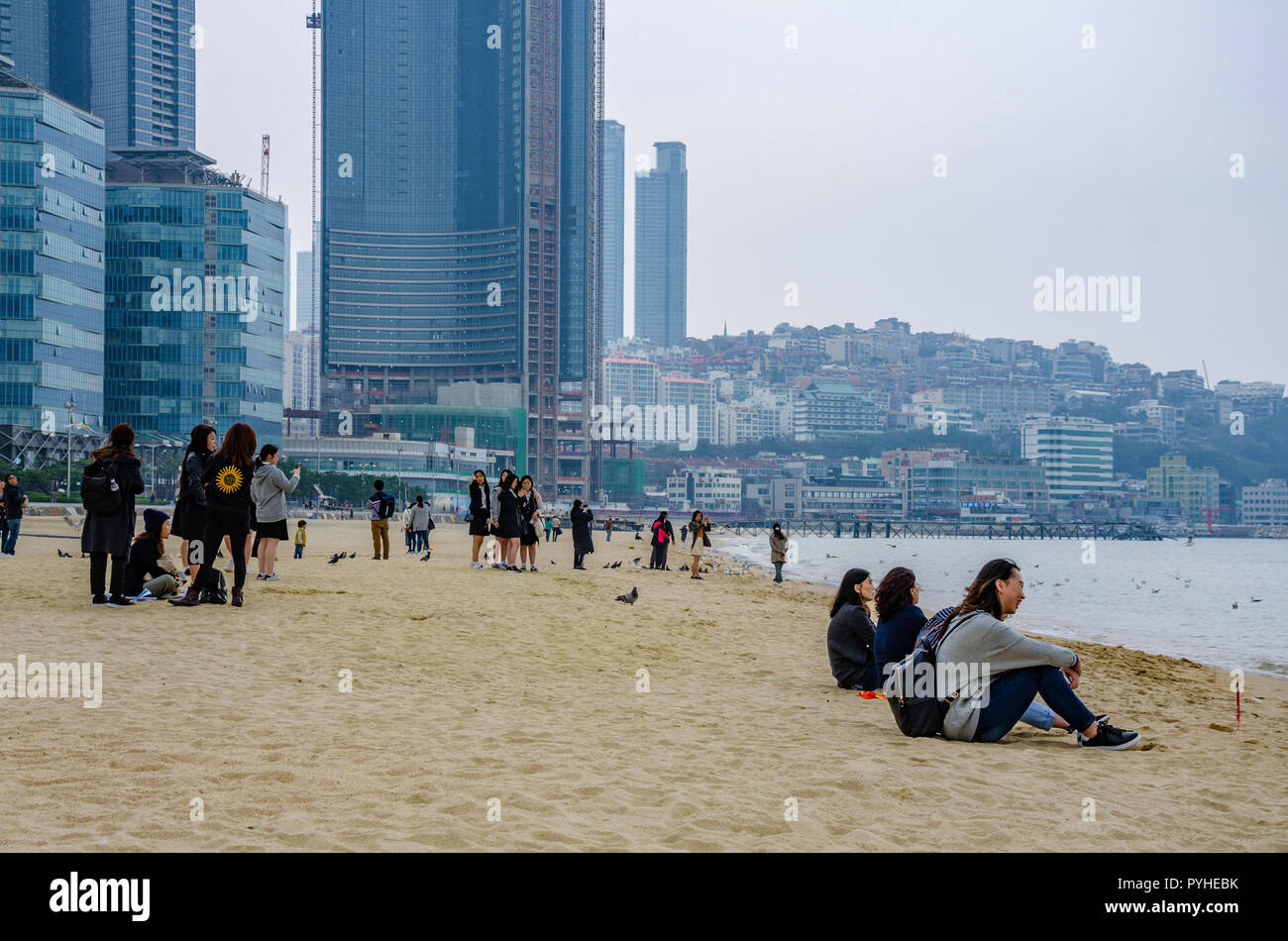 Haeundae Beach, a sandy beach popular with tourists at Busan in South Korea Stock Photo Alamy