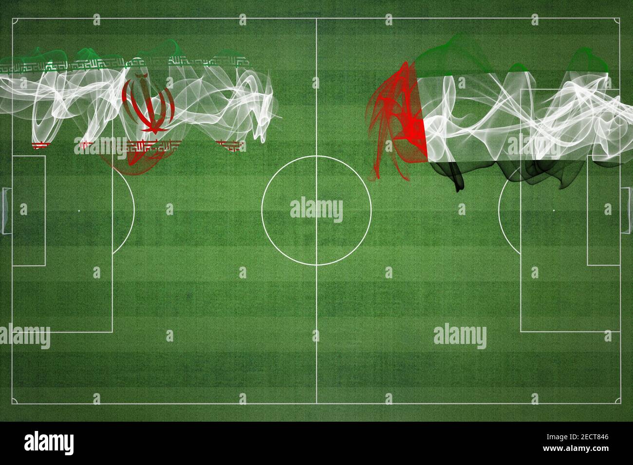 Iran vs United Arab Emirates Soccer Match, national colors, national flags, soccer field