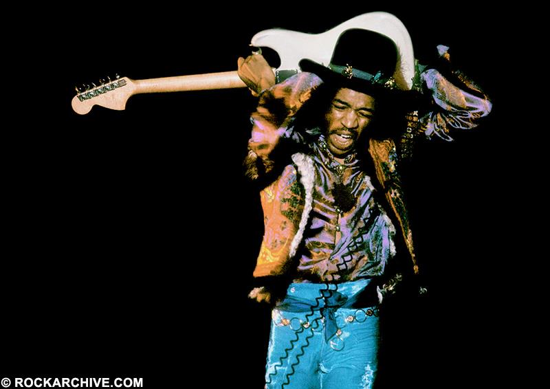 When Jimi Hendrix (1942-70) began playing London, he pulled out all the tricks he'd learned. That included playing the guitar on his back on the ground; playing in between his legs; and playing.