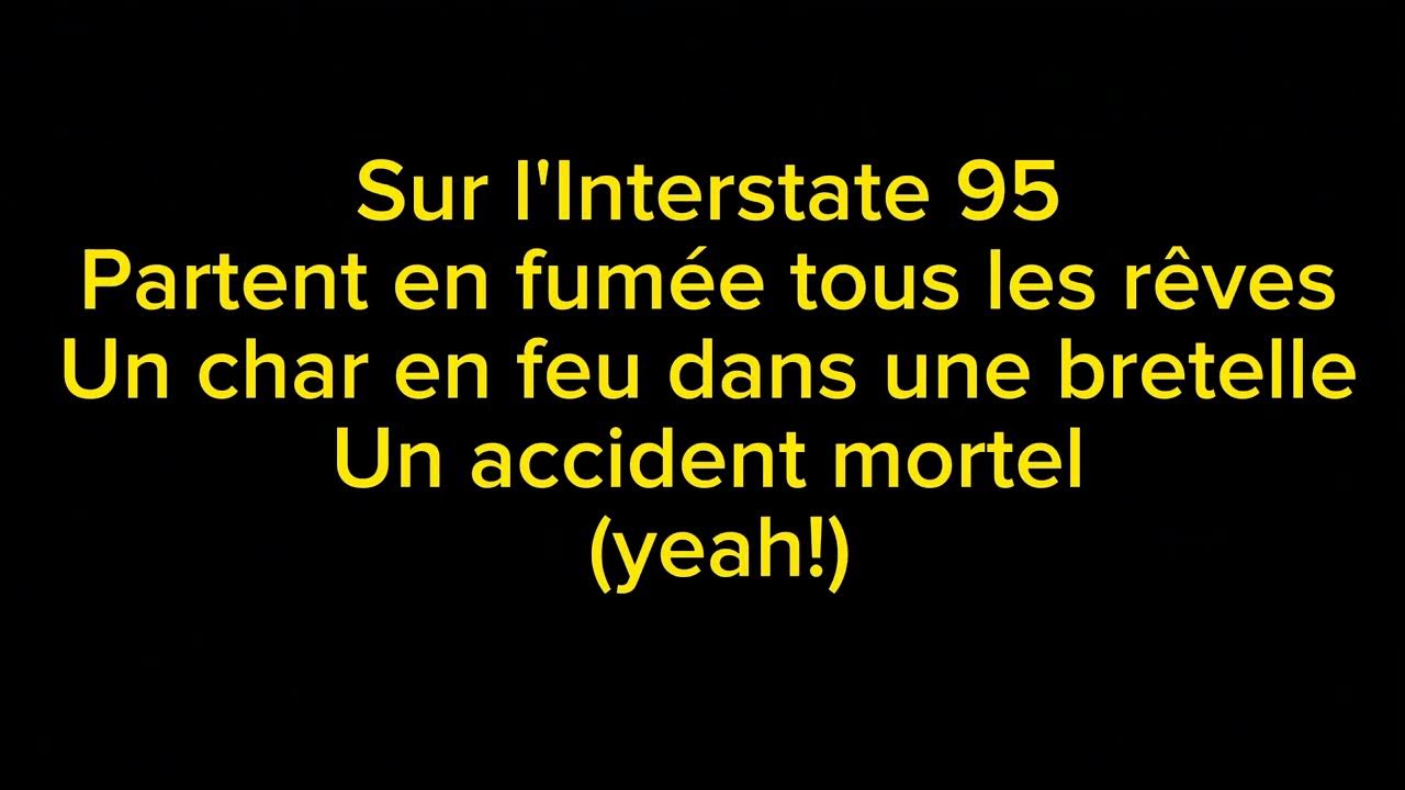 Quand je rentre à la maison. Pis que j'parque mon vieux camion. J'vois tout' l'Amérique qui pleure. Dans mon rétroviseur. Moi je traîne dans ma remorque. Tous les excès de mon époque. La surabondance surgelée. Shootée, sur-emballée, yeah! Pendant qu'les vœux pieux passent dans l'beurre.