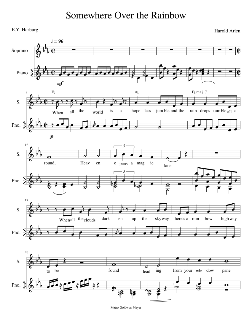 Share, download and print free sheet music of Somewhere Over The Rainbow Judy Garland for piano, guitar, flute and more with the world's largest community of sheet music creators, composers, performers, music teachers, students, beginners, artists and other musicians with over 1,000,000 sheet digital music to play, practice, learn and enjoy.