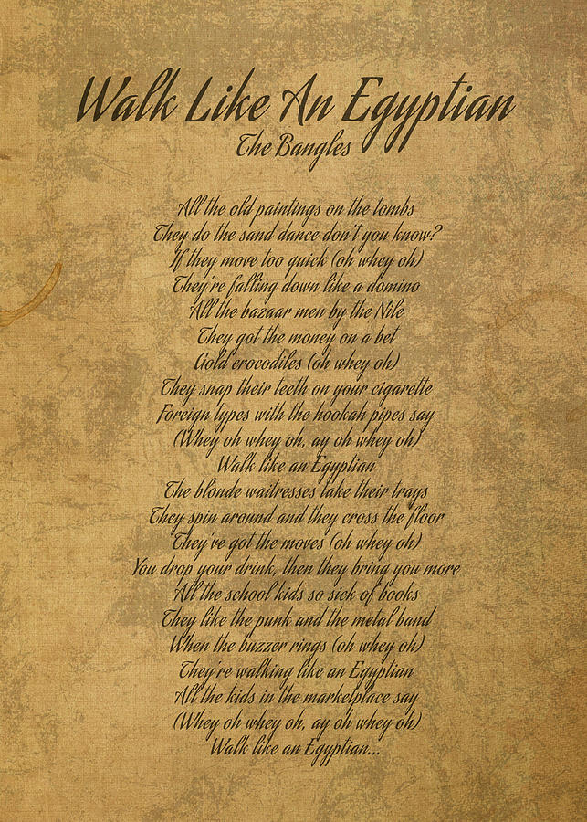 Walk Like An Egyptian by The Bangles Vintage Song Lyrics on Parchment Mixed Media by Design