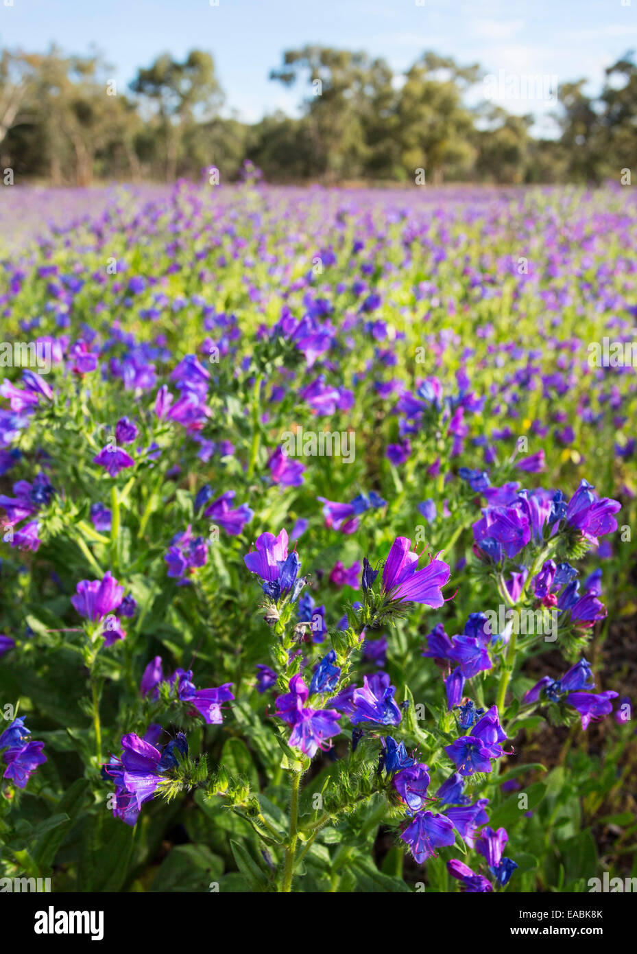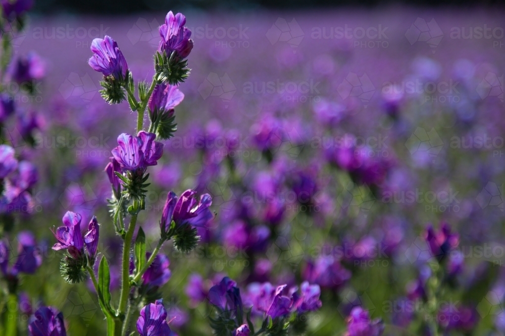 Image of Paddock of purple flowering patersons curse (salvation jane) weeds Austockphoto