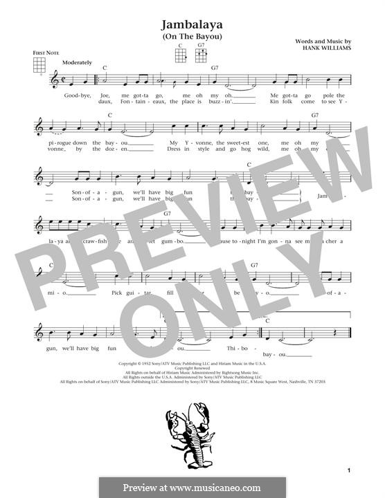 Jambalaya (On the Bayou) (Lead sheet with lyrics) Sheet music for Piano (Solo)